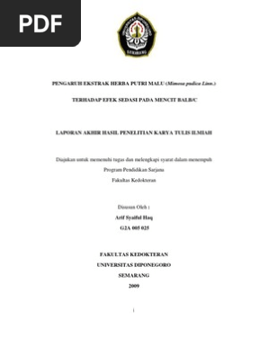 Pengaruh Ekstrak Herba Putri Malu Mimosa Pudica Linn
