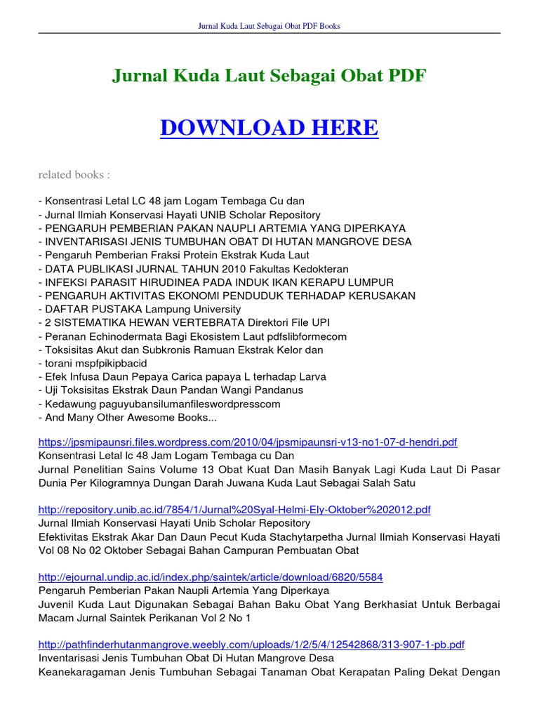 Jurnal Kuda Laut Sebagai Obat Pdf