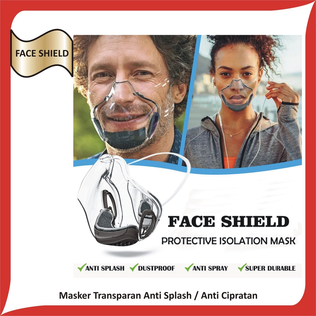 Masker Transparan Akrilik / Acrylic dengan filter udara / Kuat Nyaman
