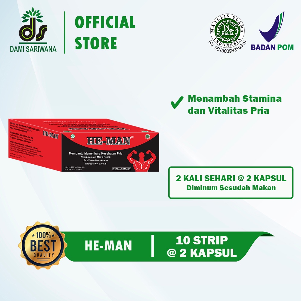 Obat Kuat Herbal Pria HE-MAN (1 Box @10 Strip @2 Kapsul) Menambah Stamina dan Meningkatkan Vitalitas Pria