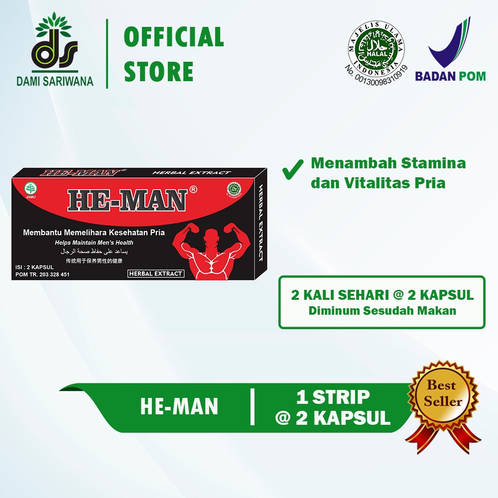Obat Kuat Herbal Pria HE-MAN (1 Strip 2 Kapsul) (x2) | Jamu Obat Kuat Pria Tahan Lama di Ranjang Aman BPOM Tanpa Efek Samping