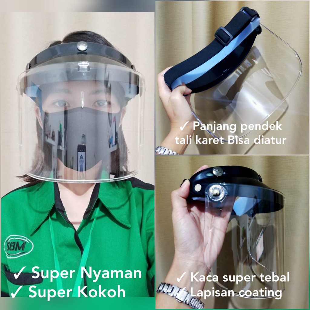 ☑️ MBB ☑️ ORI FACE SHIELD KACA TEBAL KUAT KOKOH TALI BISA DI ATUR APD PELINDUNG WAJAH FACESHIELD